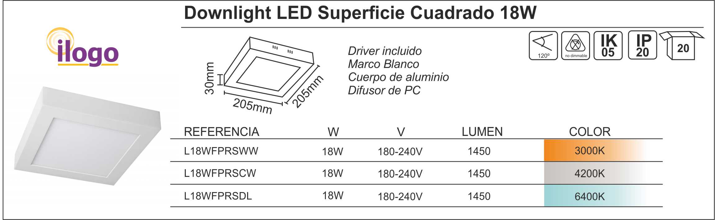 Ref. L18WFPRSDL - 6400K
